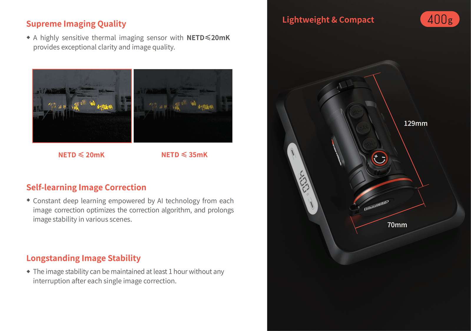 A highly sensitive thermal imaging sensor has NETD ≤ 20mK. This sensor delivers exceptional clarity and image quality. It brings every detail to life for users. Users can detect subtle differences in heat signatures. The sensor reveals hidden game in the darkest conditions.