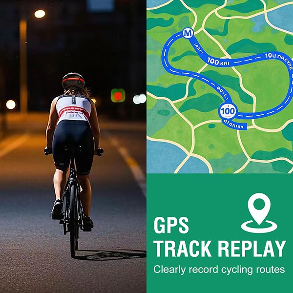 The curved drag-reducing design minimises wind resistance while maximising heat dissipation. Weighing only 476g, the helmet is ultra-light for long-term comfort. GPS track replay logs cycling routes precisely for post-ride analysis. The removable battery provides up to 4 hours of runtime per charge, ideal for extended journeys.