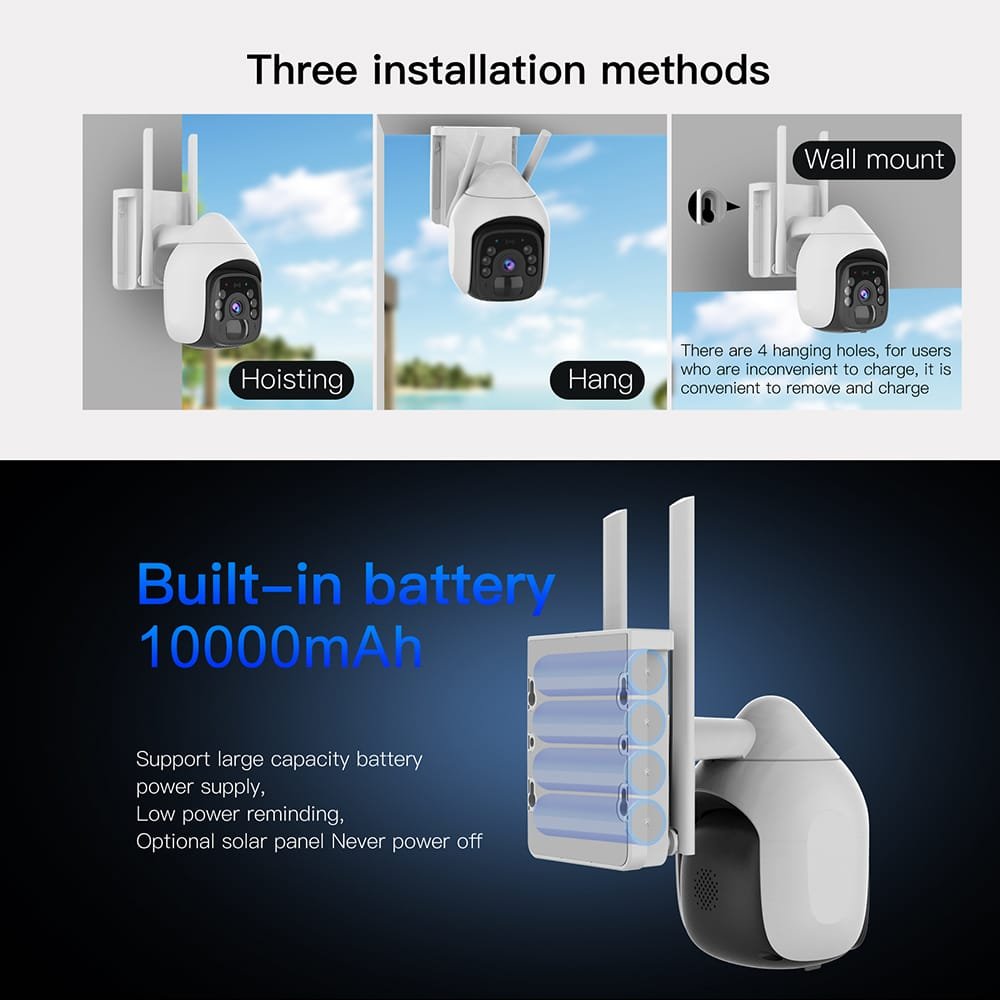 BS9 WiFi Outdoor Solar Security Camera – Ultimate Eco-Friendly Surveillance Revolutionise your property protection with this solar-powered guardian, featuring an industry-leading 10,000mAh battery capacity and effortless 2-hour solar charging for non-stop 24/7 security. Key Innovations: