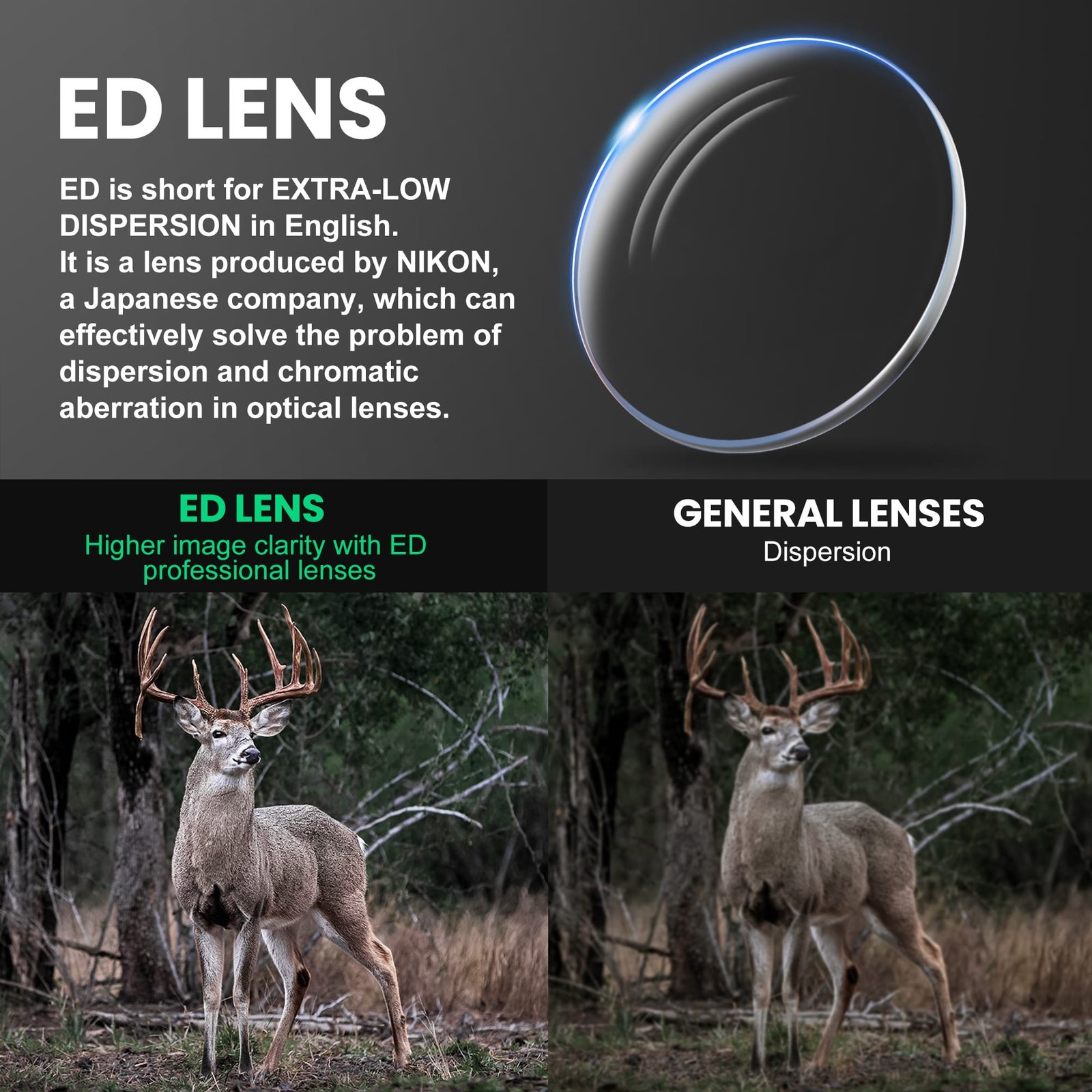 • ED (Ultra Low Dispersion): An ultra-low dispersion ED optical system is used, paired with high-quality 30mm and 34mm main tubes. This significantly reduces chromatic distortion to ensure sharp images with excellent color fidelity and resolution. Well suited for hunting and competitive shooting.