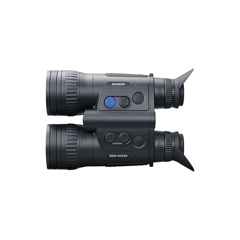 The Pulsar Merger DUO NXP50 Multispectral Thermal Binoculars encompass a wide view of human sight and vision. The visual information is processed through two displays simultaneously, in addition to reducing eye fatigue and providing an immersive all-around view. The Pulsar Merger Duo NXP50 Multispectral thermal binoculars feature a 1200p resolution nighttime sensor and focusable IR system.