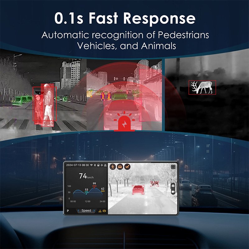 The Thermal Master NV300 MAX Car Thermal Camera System revolutionises automotive safety with AI-powered thermal detection, using a 512×384 resolution sensor to identify obstacles up to 328 yards in total darkness. It's 0.1-second response latency ensures real-time alerts for pedestrians, vehicles, or wildlife. Designed for durability, the Thermal Master NV300 MAX Car Thermal Camera System meets IP69K standards, resisting dust, water, and temperatures from -40°C to 85°C.
