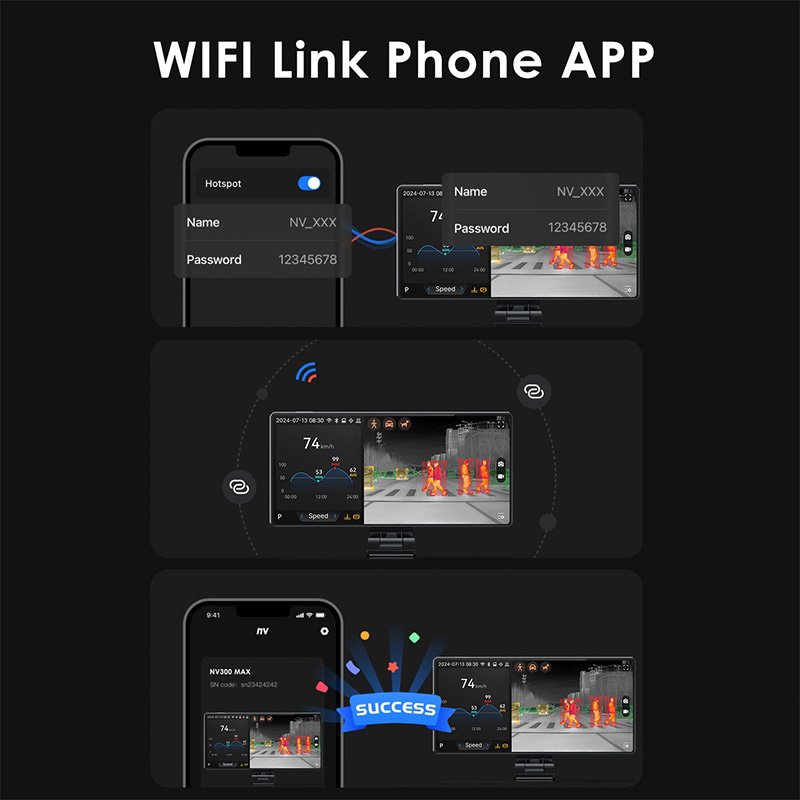 Furthermore, the NV300 MAX employs deep learning algorithms to reduce false alarms by 40% versus legacy systems. The shutterless display eliminates motion blur during high-speed navigation. Additionally, it dynamically adapts to glare or fog via adaptive exposure control, ensuring clarity in adverse weather. Notably, the device achieves under 1W power consumption, enabling 12-hour operation on a single charge. Drivers customise threat prioritisation through its intuitive interface. Moreover, the compact design (120×80×40mm) allows seamless integration with most vehicle models without visibility obstruction. For enhanced reliability, rigorous testing validates 99.8% operational accuracy across urban and off-road environments. Consequently, its plug-and-play compatibility minimises installation complexity, while recoil-activated recording captures critical pre-collision footage. In summary, the NV300 MAX combines AI precision, rugged construction, and adaptive imaging to redefine nighttime driving safety. This system stands as an industry benchmark for thermal hazard mitigation in automotive applications.